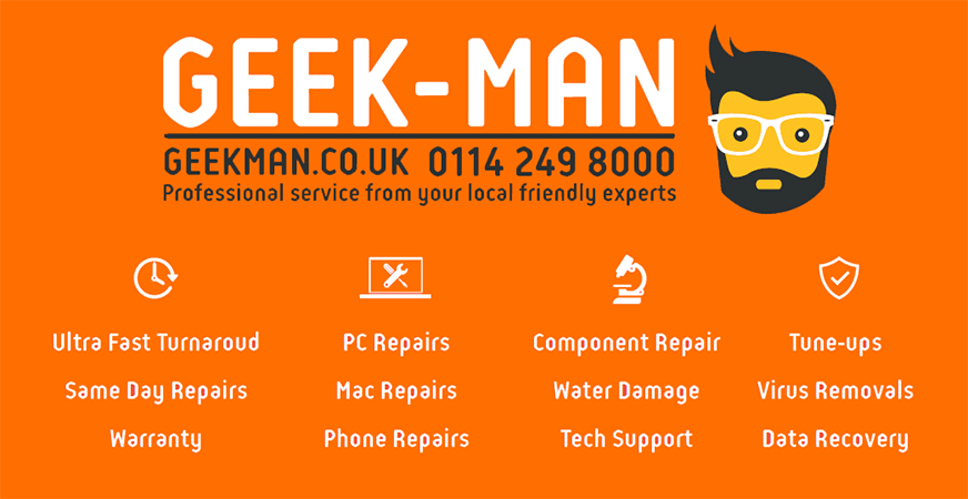 After extensive research we saw that there was a need for a reliable and responsible technology repair center in Sheffield. As a result of this GEEK-MAN was born. With our promise of affordable and reliable repairs all covered by our 90 day warranty we aim to be the only shop worth mentioning when it comes to helping with and fixing your technology.